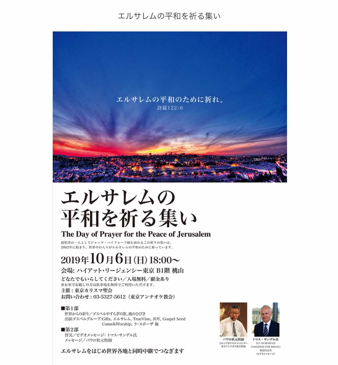 来月はエルサレムの平和を祈る集い。